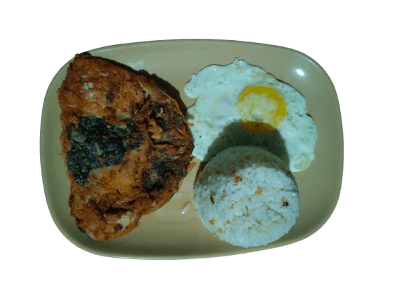 Savory hotdog with perfectly fried rice and sunny-side-up egg